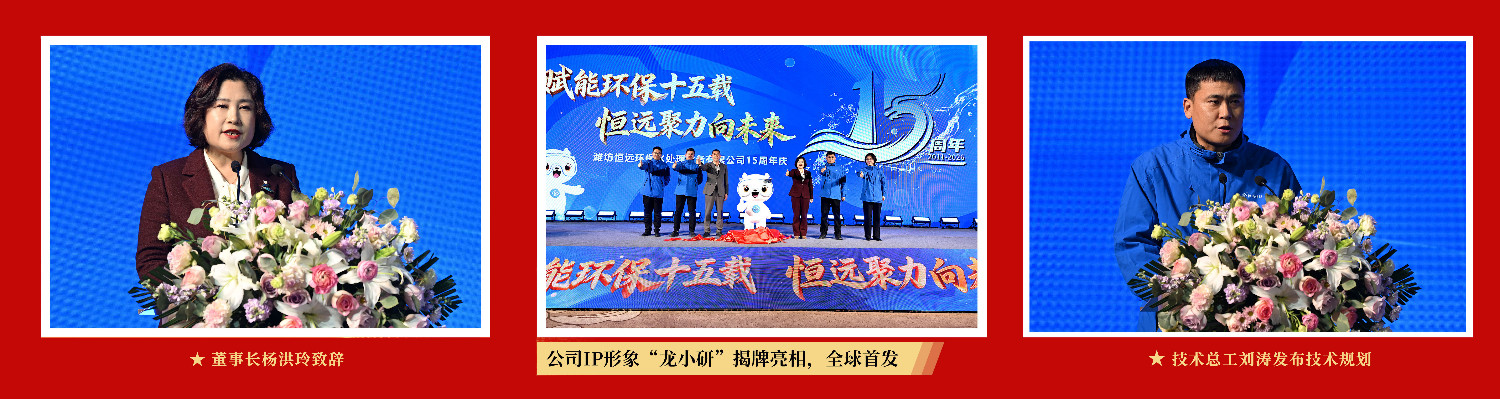 傍晚,周年慶典晚宴溫情啟幕,各級領(lǐng)導(dǎo)、行業(yè)專家、合作伙伴、客戶朋友及全體恒遠(yuǎn)人齊聚一堂,共同見證這一重要時刻。楊洪玲董事長發(fā)表致辭,回顧15年發(fā)展歷程,分享恒遠(yuǎn)環(huán)保的初心與未來規(guī)劃,字里行間滿是堅守與期許,其規(guī)劃部署為公司未來發(fā)展指明了方向,贏得現(xiàn)場熱烈掌聲。隨后,現(xiàn)場舉行恒遠(yuǎn)環(huán)保IP形象“龍小研”揭牌儀式,鮮活生動的IP形象傳遞出公司綠色發(fā)展的理念。緊接著,技術(shù)總工劉濤上臺發(fā)布技術(shù)戰(zhàn)略,詳細(xì)闡述了公司在技術(shù)研發(fā)、產(chǎn)品迭代升級等方面的核心方向與實施路徑,彰顯了恒遠(yuǎn)環(huán)保以技術(shù)創(chuàng)新驅(qū)動高質(zhì)量發(fā)展的決心。